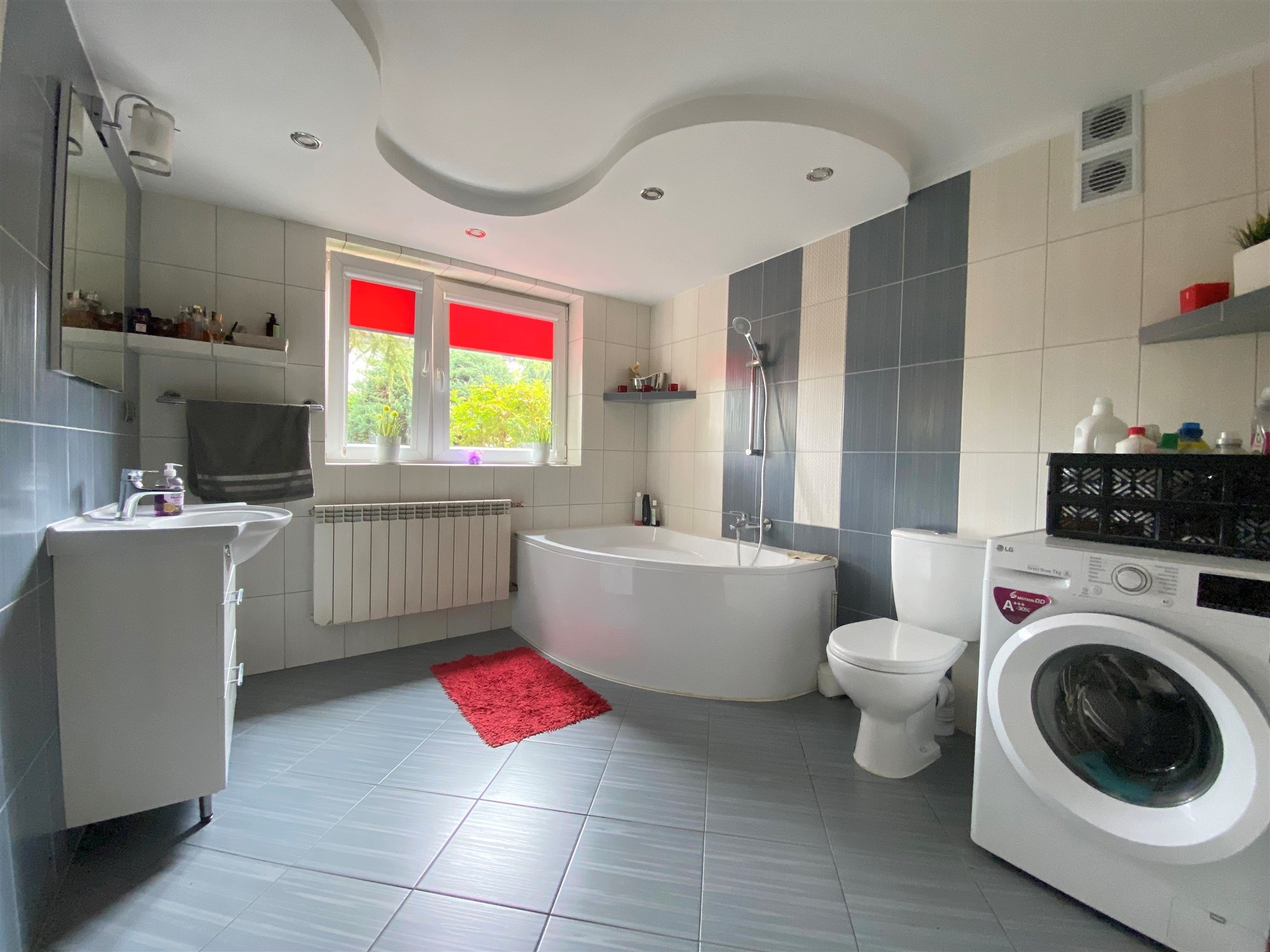 Dodatkowo oprócz części mieszkalnej mamy do dyspozycji kilka pomieszczeń gospodarczych, kotłownie z kilkuletnim piecem gazowym marki Viessmann oraz garaż w bryle budynku. Atutem domu jest mnóstwo przemyślanych pomieszczeń, w których można zorganizować garderobę, warsztat, pokój zabaw.