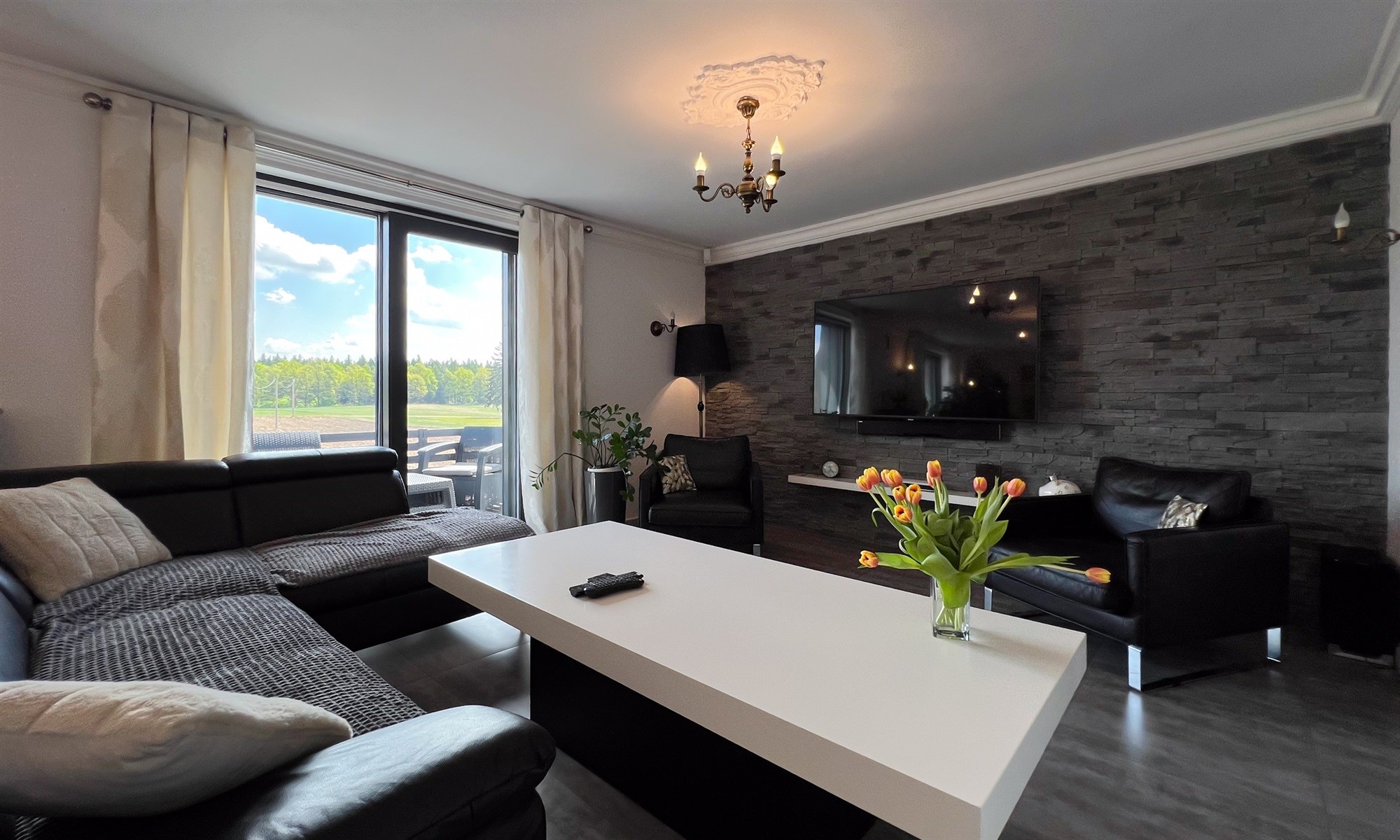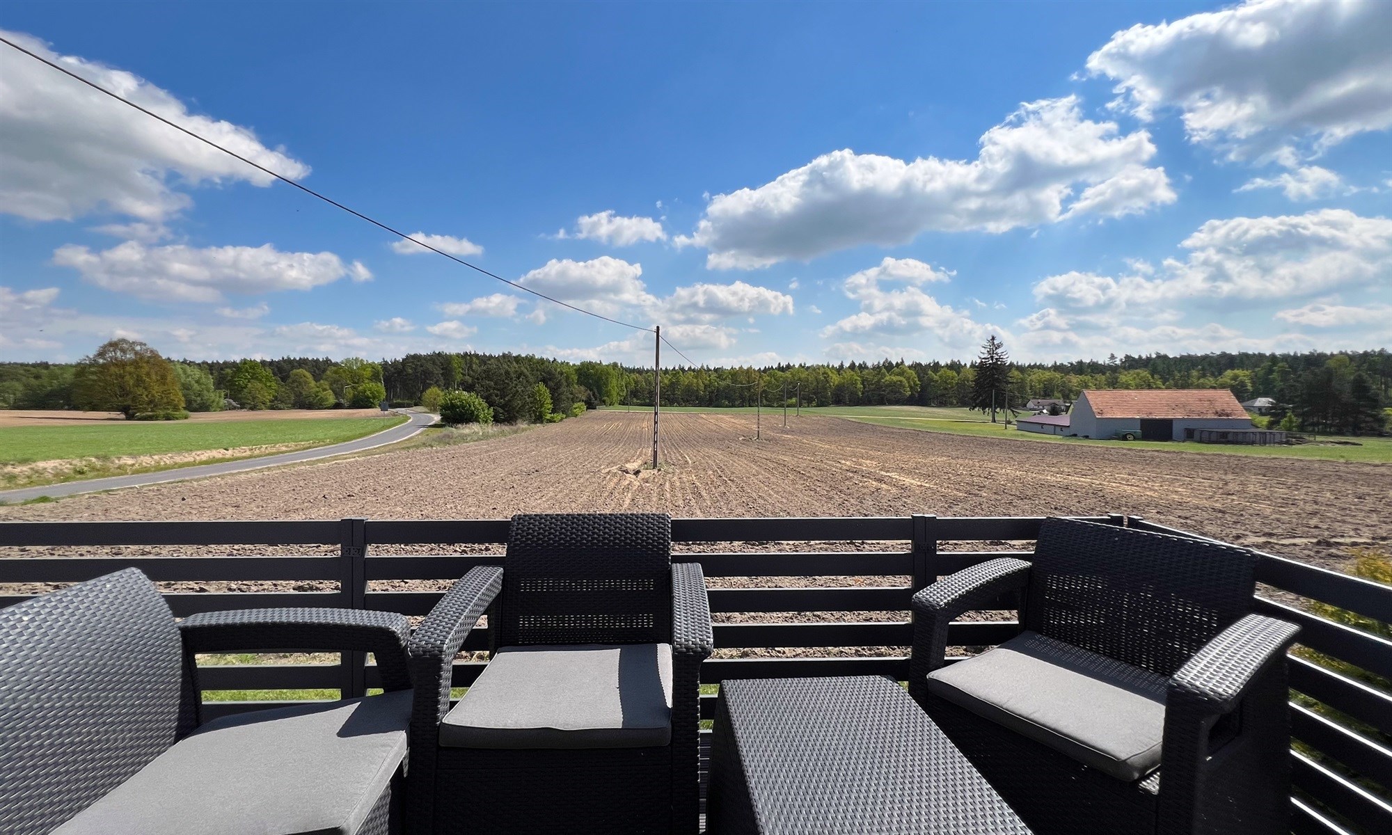Powierzchnia użytkowa domu to ok 120m2. Do tego dochodzi piwnica. Na parterze domu znajdziemy duży salon z widokiem na pola i lasy, w pełni wyposażoną kuchnię, łazienkę oraz sypialnie.