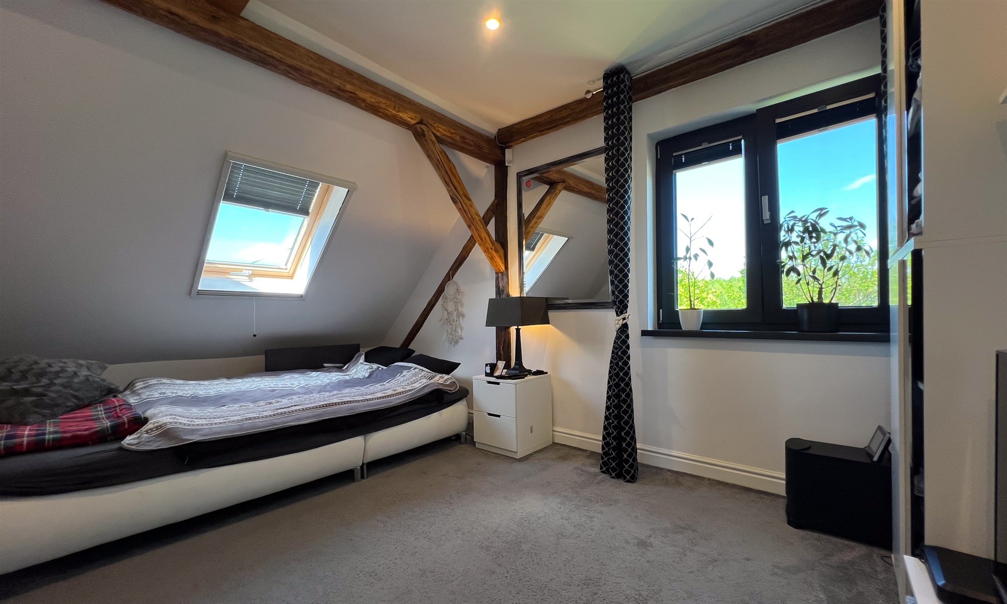 Na piętrze - dużą łazienkę, garderobę i dwie sypialnie. Całość została wykończona w podwyższonym standardzie. Drzwi, okna i rolety bardzo wysokiej klasy.