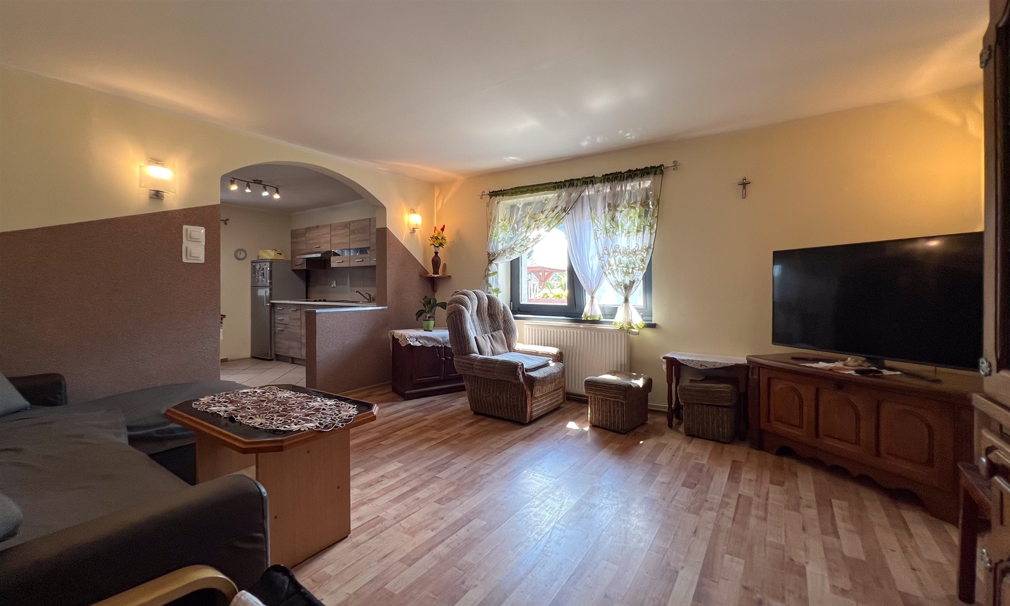 - W 2019 roku budynek został podłączony do sieci gazowej i zamontowany został piec gazowy Vaillant. W piwnicy drugiego budynku znajduje się też piec na ekogroszek Heiztechnik, z którego można korzystać zamiennie. W salonie i łazienkach ogrzewanie podłogowe. W sypialniach grzejniki.