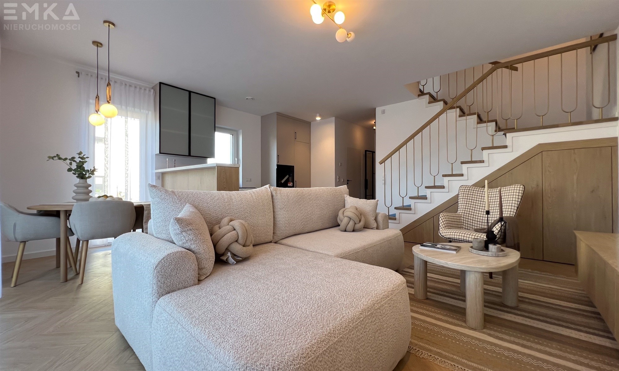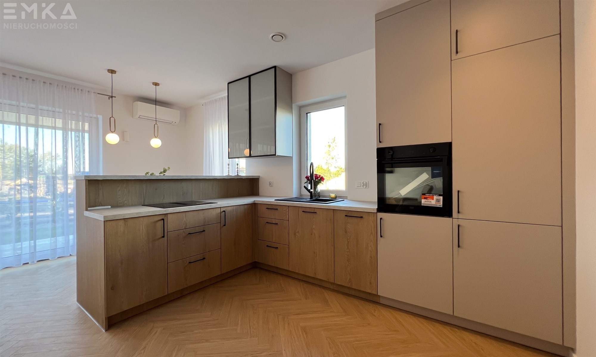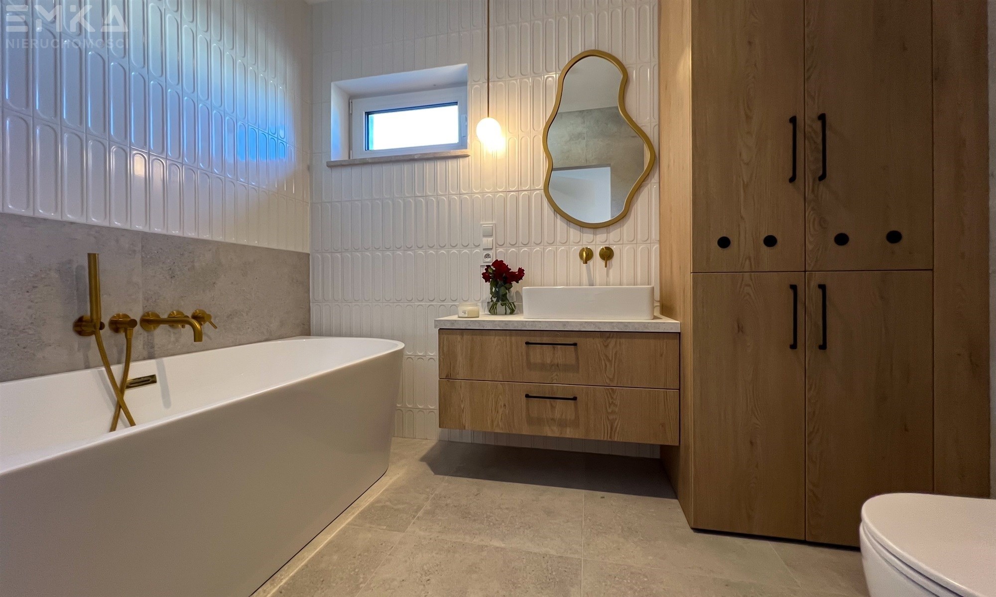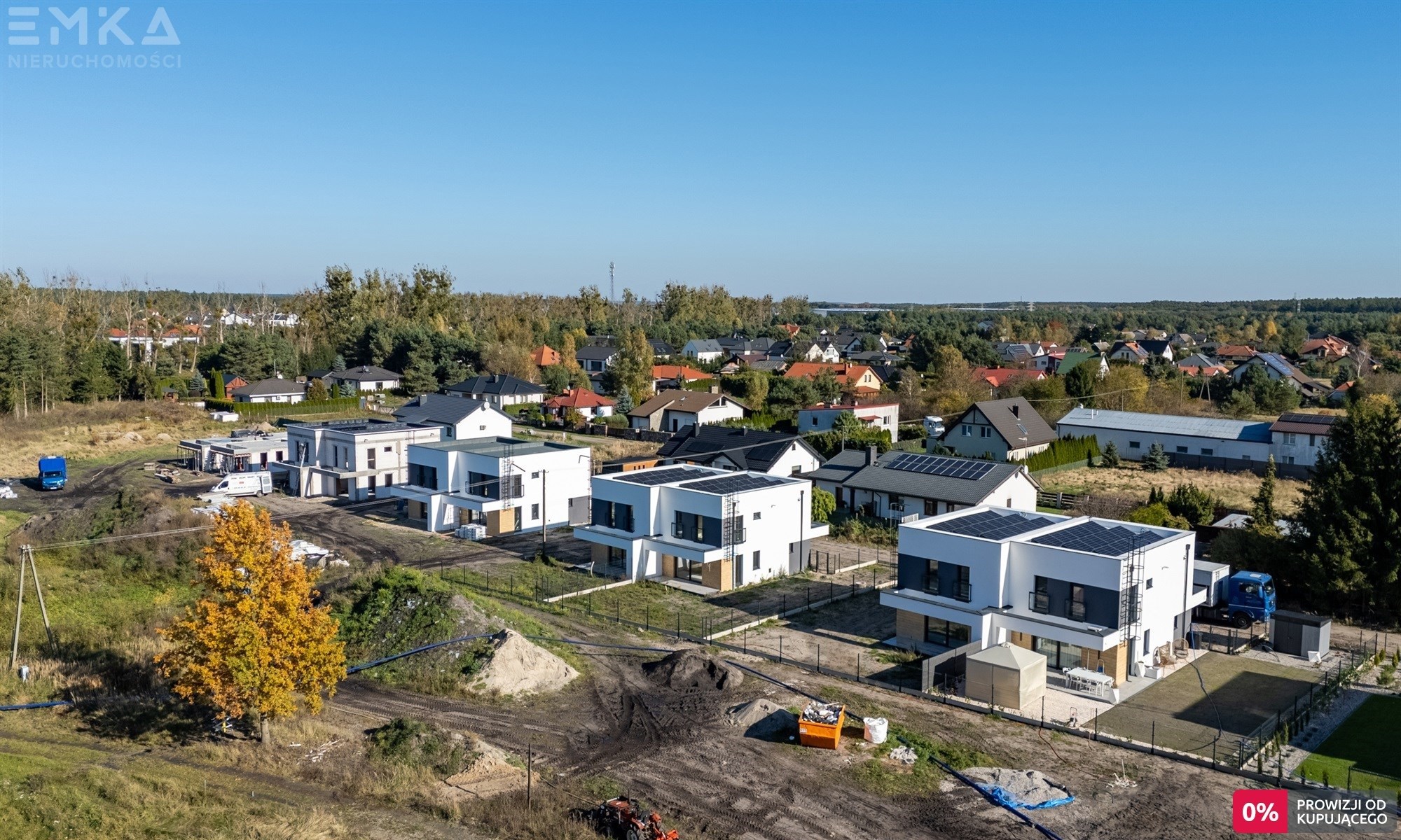 Energooszczędność i komfort: ogrzewanie podłogowe w całym domu, rekuperacja, fotowoltaika 5–6 kW, dach pokryty białą farbą redukującą nagrzewanie, instalacja wodno-kanalizacyjna przygotowana do zmiękczacza wody oraz systemy podlewania ogrodu,